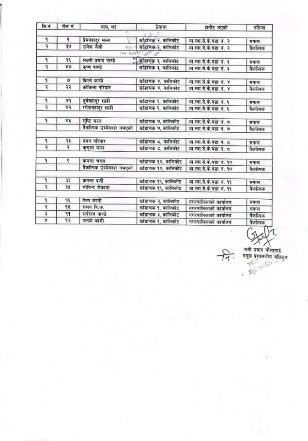 अन्तिम नतिजा प्रकाशन गरिएको सम्वन्धमा ।