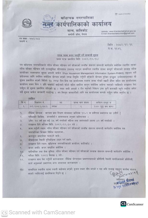 गणक पदमा करार पदपूर्ति गर्ने सम्पन्धी सूचना ।